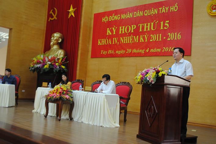 Sáng ngày 20/4/2016, HĐND quận Tây Hồ tổ chức kỳ họp thứ 15 (kỳ họp bất thường) HĐND quận khóa IV, nhiệm kỳ 2011 – 2016 nhằm thảo luận và quyết định điều chỉnh, phân loại đơn vị hành chính cấp phường trên địa bàn quận Tây Hồ thuộc thẩm quyền và trách nhiệm của HĐND quận.