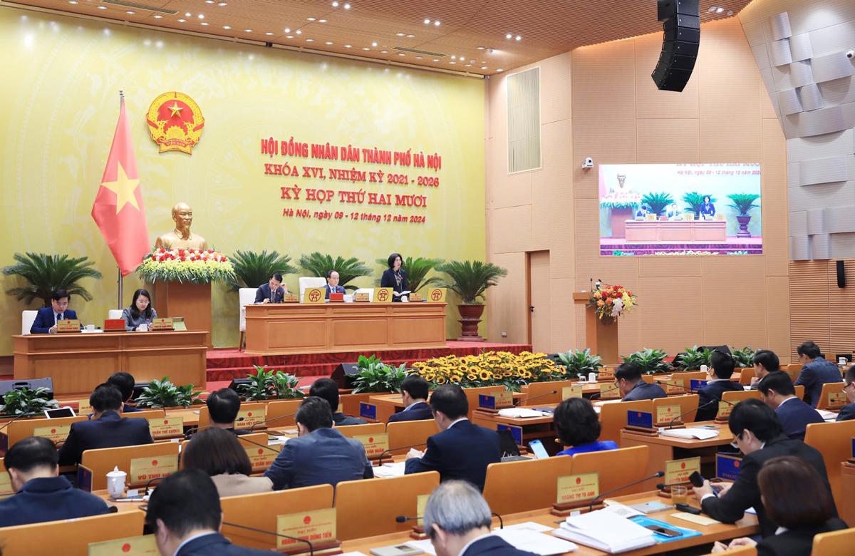 HĐND thành phố xem xét, biểu quyết thông qua Nghị quyết về Kế hoạch phát triển kinh tế - xã hội năm 2025 của thành phố; xem xét cho phép thu phí tham quan di tích lịch sử, công trình văn hóa trên địa bàn thành phố; xem xét Quy định giá cụ thể dịch vụ khám bệnh, chữa bệnh thuộc danh mục do quỹ bảo hiểm y tế thanh toán, giá cụ thể dịch vụ khám bệnh, chữa bệnh do ngân sách nhà nước thanh toán, giá cụ thể dịch vụ khám bệnh, chữa bệnh theo yêu cầu đối với các cơ sở khám bệnh, chữa bệnh công lập trên địa bàn thành phố; về biên chế và chỉ tiêu hợp đồng lao động khối chính quyền thành phố Hà Nội năm 2025; quy định chi thu nhập tăng thêm cho cán bộ, công chức, viên chức làm việc trong các cơ quan nhà nước, tổ chức chính trị, Mặt trận Tổ quốc Việt Nam, tổ chức chính trị - xã hội và đơn vị sự nghiệp công lập được ngân sách nhà nước đảm bảo toàn bộ chi thường xuyên thuộc thành phố Hà Nội quản lý; về việc đề nghị thành lập, đặt tên thôn, tổ dân phố mới và đổi tên thôn, tổ dân phố thuộc các quận, huyện, thị xã trên địa bàn thành phố Hà Nội năm 2024; các biện pháp bảo đảm thực hiện dân chủ ở cơ sở trên địa bàn thành phố Hà Nội.