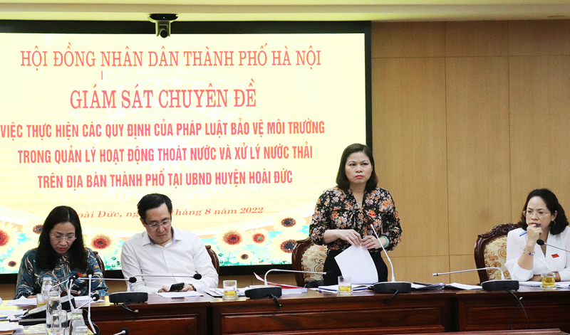 Phát biểu kết luận buổi giám sát, Phó Chủ tịch Thường trực HĐND thành phố Phùng Thị Hồng Hà đánh giá, huyện Hoài Đức đã có nhiều cố gắng trong công tác lãnh đạo, chỉ đạo thực hiện các quy định pháp luật bảo vệ môi trường trong quản lý hoạt động thoát nước và xử lý nước thải.