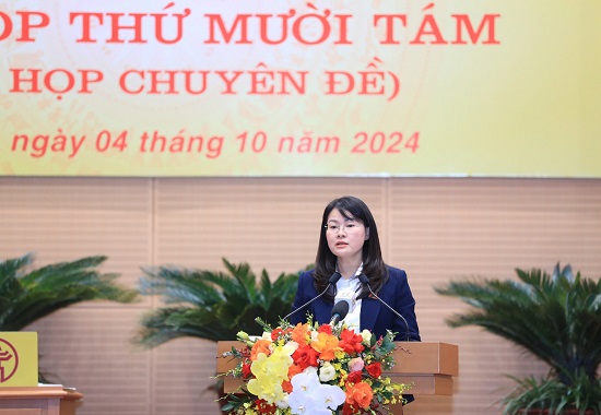 Giám đốc Sở Thông tin và Truyền thông Hà Nội Nguyễn Việt Hùng trình bày tờ trình tại kỳ họp