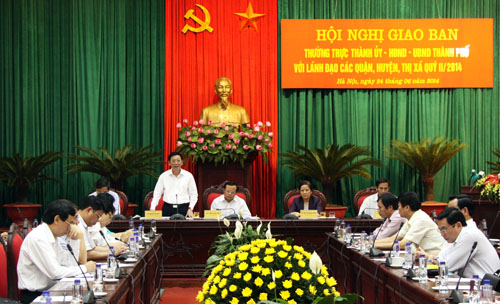 Đẩy mạnh công tác đầu tư, xử lý rác thải, nước thải, vệ sinh môi trường trên địa bàn đô thị đang phát triển nóng của Hà Nội là nội dung Hội nghị giao ban quý 2/2014 giữa Thường trực Thành ủy – HĐND – UBND TP với lãnh đạo các quận, huyện, thị xã diễn ra sáng 24/6.