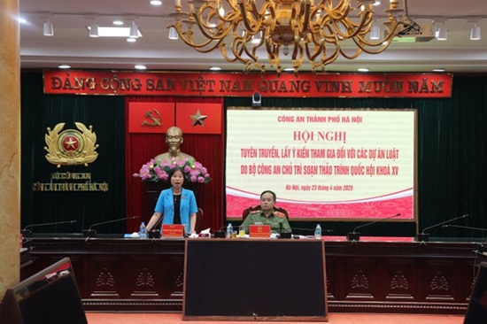Sáng 23/4/2025, Công an Thành phố Hà Nội đã tổ chức hội nghị tuyên truyền, lấy ý kiến tham gia đối với các dự án Luật do Bộ Công an chủ trì soạn thảo trình Quốc hội Khoá XV.