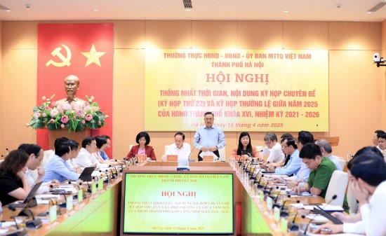 Chiều 15/4/2025, Thường trực HĐND, UBND, Ủy ban Mặt trận Tổ quốc Việt Nam thành phố Hà Nội tổ chức hội nghị thống nhất thời gian, nội dung kỳ họp chuyên đề (kỳ họp thứ 22) và kỳ họp thường lệ giữa năm 2025 của HĐND thành phố khóa XVI, nhiệm kỳ 2021-2026.