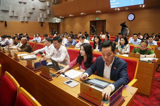 Đại biểu bấm nút thông qua nghị quyết tại phiên họp.