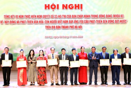 Sáng 6-11, Thành ủy Hà Nội tổ chức Hội nghị Tổng kết 10 năm thực hiện Nghị quyết số 33-NQ/TƯ của Ban Chấp hành Trung ương Đảng khoá XI về “Xây dựng và phát triển văn hóa, con người Việt Nam đáp ứng yêu cầu phát triển bền vững đất nước”.