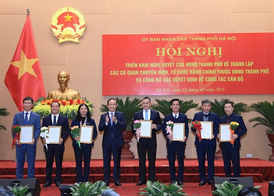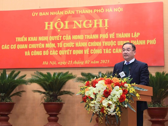 Chiều 25/02/2025, UBND thành phố Hà Nội tổ chức hội nghị triển khai Nghị quyết của HĐND thành phố về thành lập các cơ quan chuyên môn, tổ chức hành chính thuộc UBND thành phố và công bố quyết định về công tác cán bộ.
