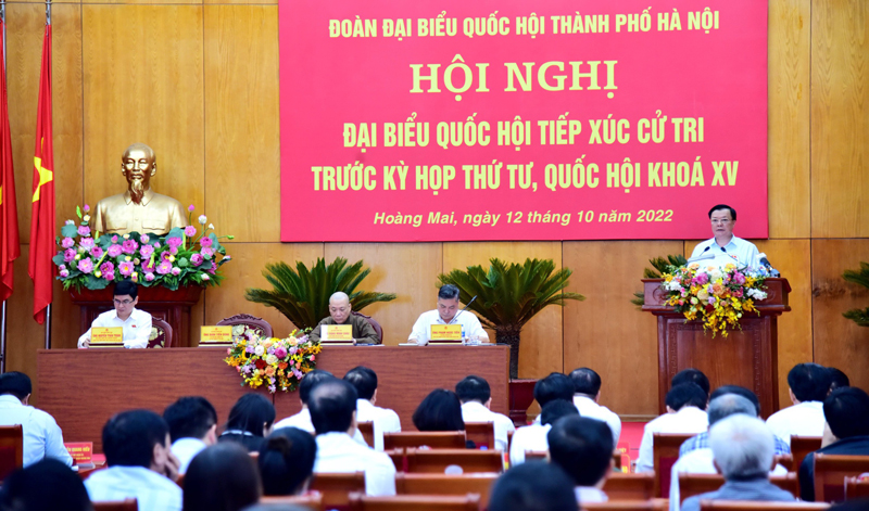 Chiều 12/10/2022, tại trụ sở HĐND - UBND quận Hoàng Mai, đồng chí Đinh Tiến Dũng, Ủy viên Bộ Chính trị, Bí thư Thành ủy, Trưởng đoàn đại biểu Quốc hội thành phố Hà Nội cùng các đại biểu Quốc hội đã tiếp xúc cử tri quận Hoàng Mai trước kỳ họp thứ tư, Quốc hội khóa XV.