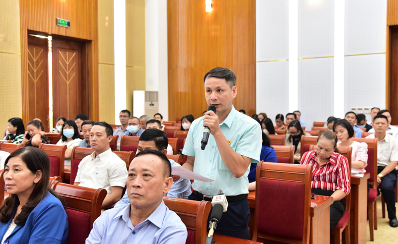 Các cử tri quận Hoàng Mai phát biểu ý kiến tại hội nghị tiếp xúc cử tri