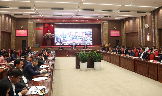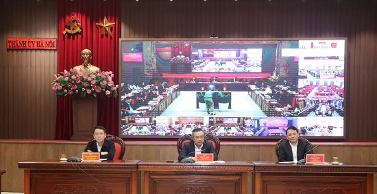 Quang cảnh hội nghị tại điểm cầu Thành uỷ Hà Nội.