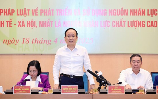 Báo cáo với đoàn giám sát, Phó Chủ tịch Thường trực UBND thành phố Hà Nội Lê Hồng Sơn cho biết, giai đoạn 2021-2024, thành phố Hà Nội đã thực hiện tốt chủ trương, chính sách, pháp luật về phát triển và sử dụng nguồn nhân lực, nguồn nhân lực chất lượng cao đáp ứng yêu cầu phát triển kinh tế - xã hội; ban hành kịp thời, đầy đủ các văn bản quy phạm pháp luật, văn bản chỉ đạo, điều hành về lĩnh vực này.