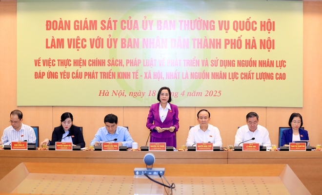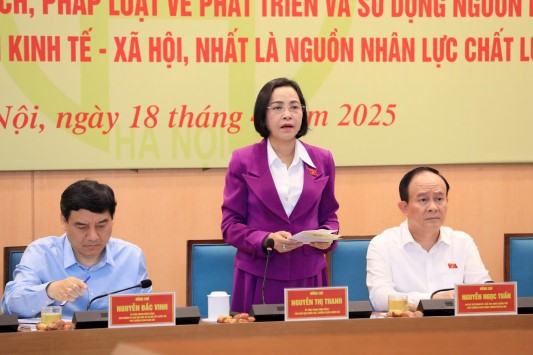 Chiều 18-4, Đoàn giám sát của Ủy ban Thường vụ Quốc hội do Ủy viên Trung ương Đảng, Phó Chủ tịch Quốc hội Nguyễn Thị Thanh làm Trưởng đoàn đã làm việc với UBND thành phố Hà Nội về chuyên đề “Việc thực hiện chính sách, pháp luật về phát triển và sử dụng nguồn nhân lực đáp ứng yêu cầu phát triển kinh tế - xã hội, nhất là nguồn nhân lực chất lượng cao”.