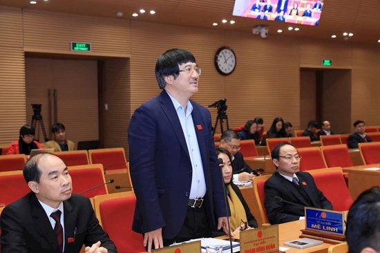 Đại biểu Phạm Đình Đoàn (Tổ Mê Linh) trao đổi tại kỳ họp