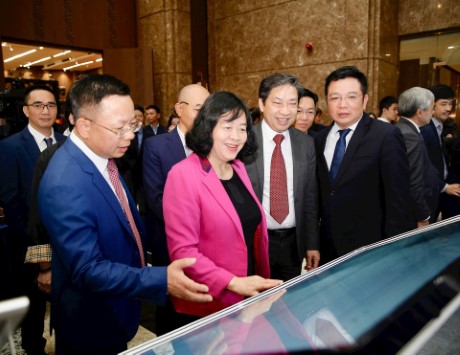 Tiếp đó, Bí thư Thành ủy Bùi Thị Minh Hoài cùng các đồng chí lãnh đạo Trung ương và thành phố đã bấm nút chính thức khai trương các ứng dụng chuyển đổi số của Thành ủy Hà Nội dùng chung cho khối đảng, chính quyền, Mặt trận Tổ quốc và các tổ chức chính trị - xã hội thành phố Hà Nội.