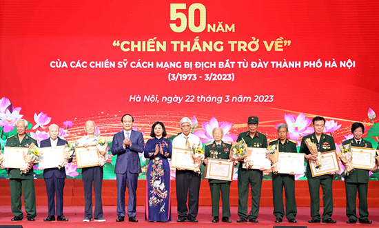 Sáng 22/3/2023, tại Cung Văn hóa lao động hữu nghị Việt - Xô, Thành ủy - HĐND - UBND - Ủy ban Mặt trận Tổ quốc Việt Nam thành phố Hà Nội tổ chức trọng thể gặp mặt kỷ niệm 50 năm “Chiến thắng trở về" của các chiến sĩ cách mạng bị địch bắt tù đày tại trại giam tù binh cộng sản Phú Quốc, hiện đang sinh sống trên địa bàn thành phố Hà Nội.