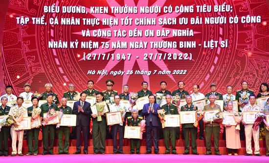 Kỷ niệm 75 năm Ngày Thương binh - Liệt sĩ (27/7/1947 - 27/7/2022), sáng 26/7/2022, tại Cung Văn hóa lao động hữu nghị Việt - Xô (Hà Nội), Thành ủy, HĐND, UBND, Ủy ban Mặt trận Tổ quốc Việt Nam thành phố Hà Nội tổ chức Hội nghị biểu dương, khen thưởng người có công tiêu biểu; tập thể, cá nhân thực hiện tốt chính sách ưu đãi người có công và công tác “Đền ơn, đáp nghĩa” thành phố Hà Nội.