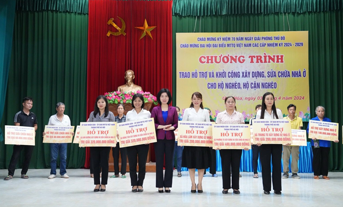 Đồng chí Phùng Thị Hồng Hà cho biết, chương trình trao hỗ trợ và khởi công xây dựng, sửa chữa nhà ở cho hộ nghèo, hộ cận nghèo tại 15 huyện, thị xã trên địa bàn Thành phố do Ủy ban MTTQ Việt Nam thành phố Hà Nội tổ chức là việc làm thiết thực, mang tính nhân văn sâu sắc, thể hiện truyền thống đoàn kết, "lá lành đùm lá rách", tinh thần tương thân, tương ái, chung tay vì người nghèo của cả hệ thống chính trị Thủ đô, tạo điều kiện cho các hộ gia đình có hoàn cảnh khó khăn có cuộc sống ngày càng tốt hơn. Toàn Thành phố sẽ có 725 hộ nghèo, hộ cận nghèo được hỗ trợ xây dựng, sửa chữa nhà ở.