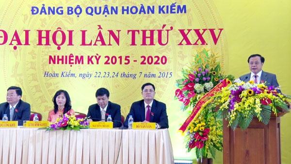 Bí thư Thành ủy Phạm Quang Nghị phát biểu chỉ đạo tại Đại hội Đảng bộ quận Hoàn Kiếm