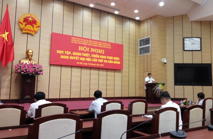 Thực hiện Chỉ thị số 01-CT/TW ngày 22/3/2016 của Bộ Chính trị và Hướng dẫn số 04-HD/BTGTW ngày 8/4/2016 của Ban Tuyên giáo Trung ương “về học tập, quán triệt, tuyên truyền và triển khai thực hiện Nghị quyết Đại hội đại biểu toàn quốc lần thứ XII của Đảng”, ngày 13/9, Đảng bộ cơ quan Văn phòng HĐND Thành phố đã phối hợp với Đảng bộ cơ quan Văn phòng UBND, Chi bộ Văn phòng Đoàn ĐBQH thành phố Hà Nội tổ chức Hội nghị học tập, quán triệt, triển khai Nghị quyết Đại hội XII của Đảng cho cán bộ, công chức, người lao động các cơ quan.