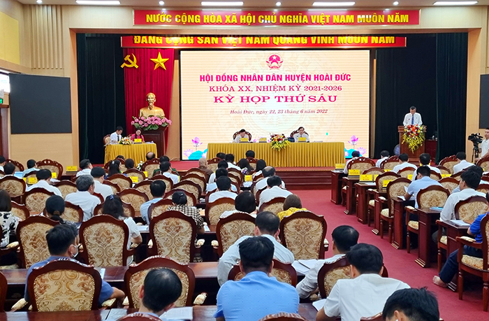 Chiều 22/6/2022, HĐND huyện Hoài Đức khóa XX, nhiệm kỳ 2021 - 2026 khai mạc kỳ họp thứ 6 để đánh giá kết quả thực hiện chỉ tiêu kinh tế - xã hội, an ninh, quốc phòng 6 tháng đầu năm 2022, đề ra nhiệm vụ, giải pháp thực hiện nhiệm vụ 6 tháng cuối năm 2022 và thực hiện các nhiệm vụ theo luật định.