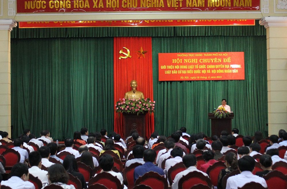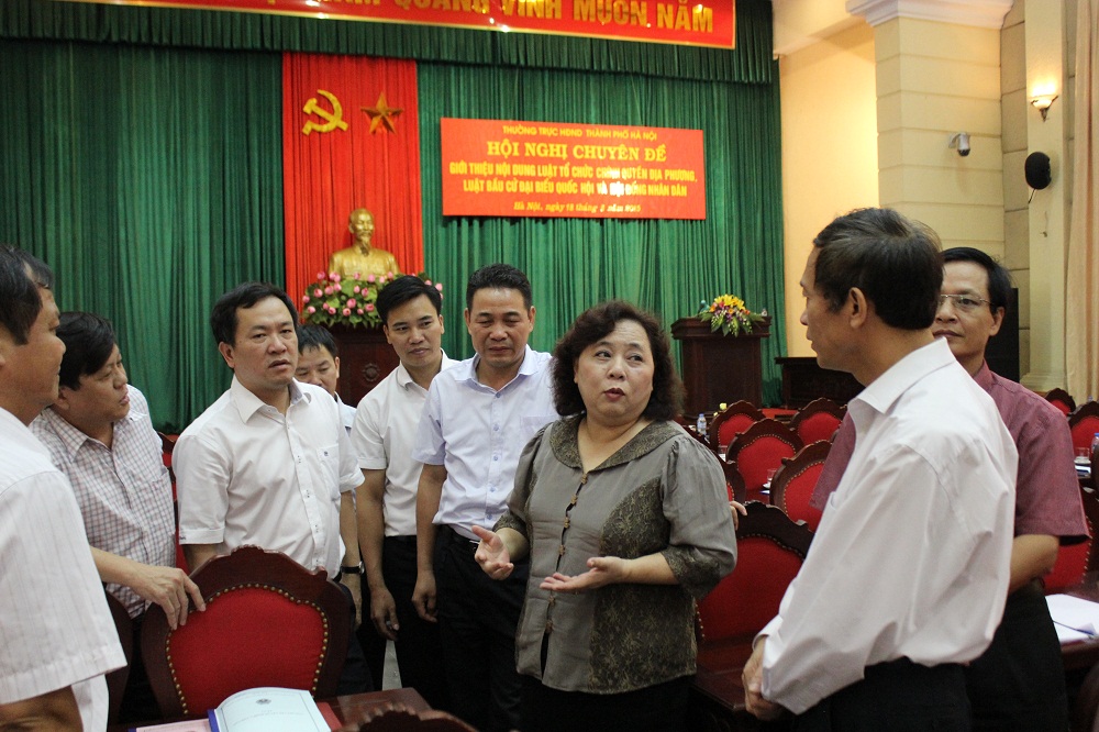 Các đại biểu tham dự đã được Phó Giáo sư, Tiến sỹ Lê Minh Thông - Phó Chủ nhiệm Uỷ ban Pháp luật của Quốc hội giới thiệu những nội dung cơ bản, nội dung mới của 02 Luật: Tổ chức chính quyền địa phương, Bầu cử đại biểu Quốc hội và đại biểu HĐND. Đây là 2 luật quan trọng, có tác động lớn tới hoạt động của HĐND các cấp thành phố Hà Nội. Việc triển khai sớm, đầy đủ đối với các đại biểu HĐND Thành phố, Thường trực HĐND các quận, huyện, thị xã của Hà Nội sẽ góp phần quán triệt nhanh các nội dung của luật, các tác động quan trọng trong thời điểm chuẩn bị tổng kết nhiệm kỳ và tiến tới bầu cử HĐND các cấp.