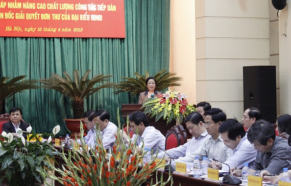 Ngoài nội dụng kiểm điểm hoạt động HĐND TP, HĐND các quận, huyện, thị xã Quý I, triển khai nhiệm vụ trọng tâm Quý II năm 2013, Thường trực HĐND Thành phố xác định chuyên đề trao đổi tập trung “Các biện pháp nhằm nâng cao chất lượng công tác tiếp dân và đôn đốc giải quyết đơn thư của đại biểu HĐND” gắn với sơ kết 3 tháng triển khai thực hiện Đề án “Đổi mới công tác tiếp công dân của đại biểu HĐND Thành phố Hà Nội khóa XIV, nhiệm kỳ 2011 – 2016”.