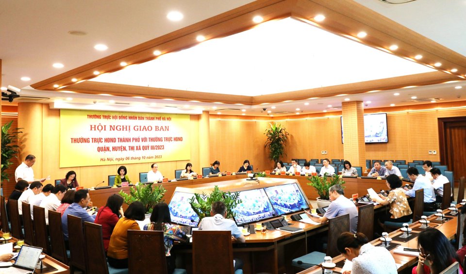 Hội nghị đánh giá về kết quả công tác 9 tháng năm 2023 và các nhiệm vụ trọng tâm 3 tháng cuối năm của HDNĐ các cấp TP Hà Nội; thảo luận về 2 nội dung: Tổng kết thi hành Luật hoạt động giám sát của Quốc hội và HĐND; chuẩn bị tổ chức lấy phiếu tín nhiệm đối với những người được HĐND bầu theo Nghị quyết số 96/2023/NQ-QH15 của Quốc hội.
