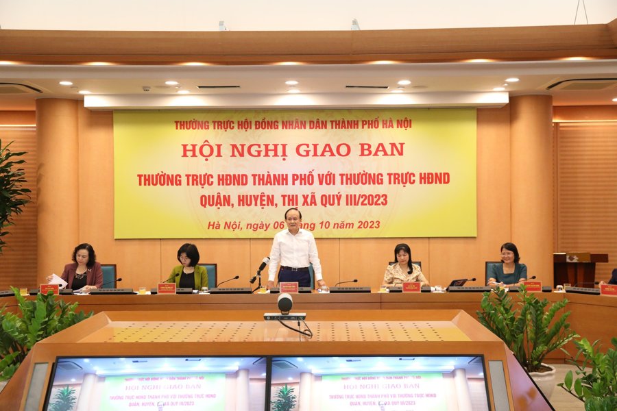 Sáng 6/10, Phó Bí thư Thành ủy, Chủ tịch HĐND TP Hà Nội Nguyễn Ngọc Tuấn đã chủ trì Hội nghị giao ban giữa Thường trực HĐND TP với Thường trực HĐND quận, huyện, thị xã quý 3/2023. Hội nghị được tổ chức theo hình thức trực tiếp kết hợp trực tuyến đến các điểm cầu.