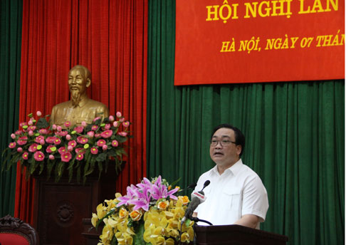 Bí thư Thành ủy Hà Nội Hoàng Trung Hải phát biểu kết luận hội nghị.
