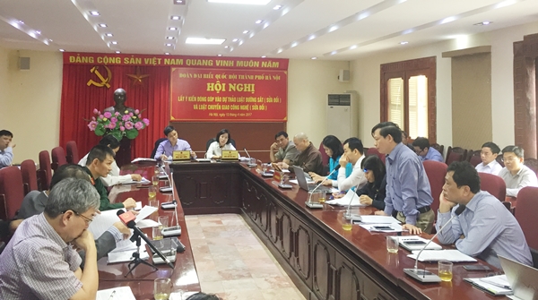 Ngày 13/4, Đoàn đại biểu Quốc hội thành phố Hà Nội đã tổ chức hội nghị lấy ý kiến góp ý dự thảo Luật Đường sắt (sửa đổi) và Luật Chuyển giao công nghệ (sửa đổi). Các đại biểu đã đi sâu phân tích, đối chiếu những điểm mới trong dự thảo sửa đổi; góp ý cụ thể vào từng điều, khoản được cơ quan soạn thảo bổ sung, thay thế cho Luật ban hành trước đó.