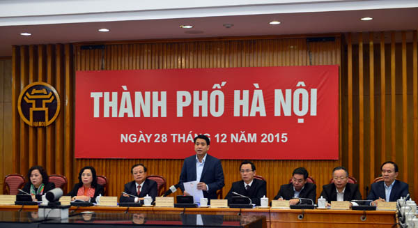 Chủ tịch UBND TP Nguyễn Đức Chung cho biết: năm 2015, Hà Nội đã bám sát các chỉ đạo của Chính phủ, phối hợp chặt chẽ với các Bộ, Ban, ngành Trung ương và các địa phương nỗ lực, cố gắng hoàn thành tốt các nhiệm vụ chính trị. Tổng sản phẩm quốc nội GRDP tăng 9,24% (năm 2014 là 8,8%); lạm phát được kiểm soát, chỉ số giá tiêu dùng CPI tăng dưới 1%. Tính đến ngày 26/12, thu ngân sách đạt 148.271 tỷ đồng (bằng 104,6% dự toán); môi trường đầu tư kinh doanh được cải thiện; chỉ số cải cách hành chính PCI tăng; số DN thành lập mới tăng cả số lượng và vốn; an sinh xã hội được đảm bảo, đã giải quyết việc làm cho 148.000 lao động; công tác quy hoạch được đẩy nhanh tiến độ; xây dựng nông thôn mới được quan tâm, đến nay Hà Nội đã có 53 xã, 1 huyện đạt chuẩn NTM... Bên cạnh đó, Hà Nội đã chủ trì phối hợp tổ chức, bảo vệ thành công các sự kiện chính trị của lớn của Đảng, Nhà nước; giữ vững an ninh trật tự và tiếp tục là điểm đến yêu thích của du khách.