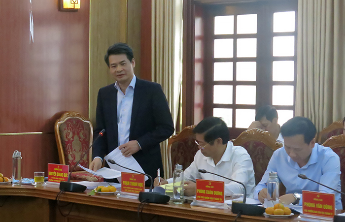 Bí thư Huyện ủy Chương Mỹ Nguyễn Văn Thắng báo cáo các nội dung Đoàn kiểm tra quan tâm