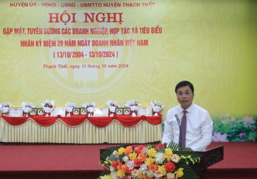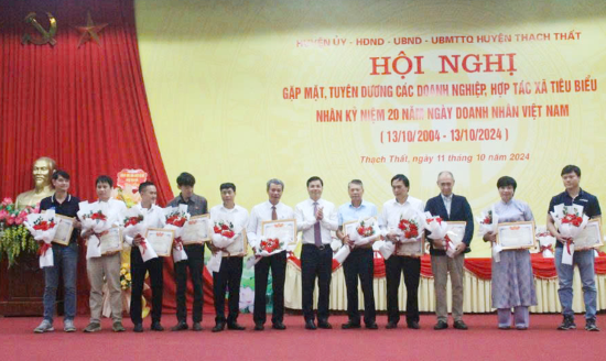 Chiều 11/10, huyện Thạch Thất tổ chức Hội nghị gặp mặt, biểu dương các doanh nghiệp, hợp tác xã tiêu biểu trên địa bàn nhân kỷ niệm 20 năm Ngày Doanh nhân Việt Nam (13/10/2004-13/10/2024).