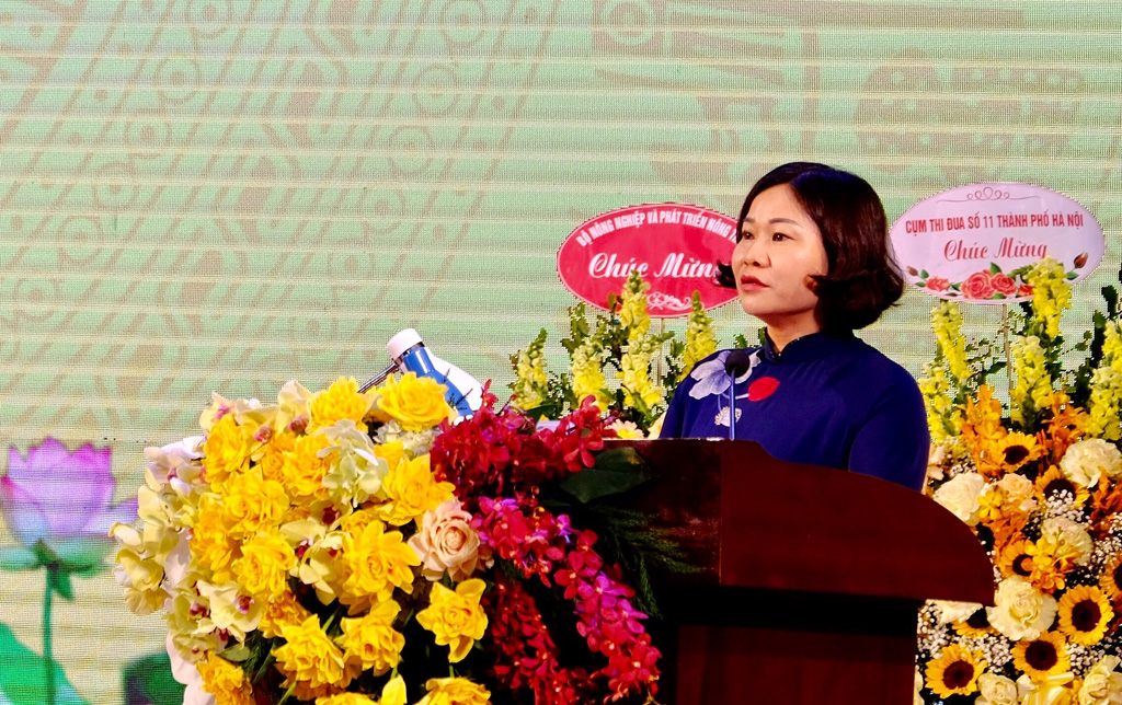 Phó Bí thư Thường trực Thành ủy Hà Nội Nguyễn Thị Tuyến phát biểu tại buổi lễ.