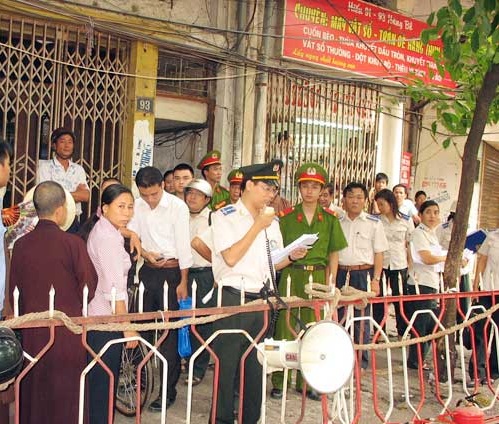 Lực lượng THADS Hà Nội tiến hành cưỡng chế thi hành án vụ việc tại địa bàn quận Hoàn Kiếm