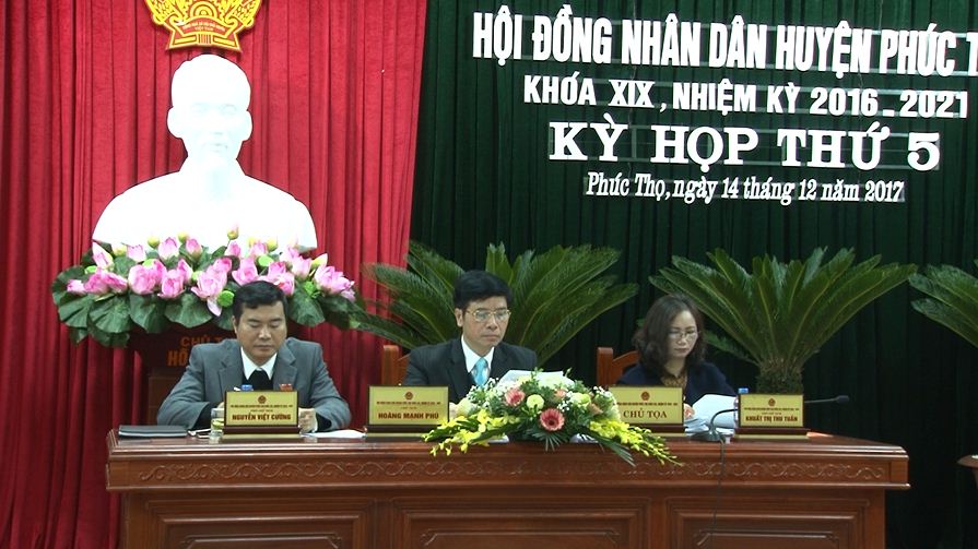 Thực hiện Luật Tổ chức chính quyền địa phương năm 2015, HĐND huyện Phúc Thọ đã tổ chức kỳ họp thứ 5 HĐND huyện khóa XIX, nhiệm kỳ 2016 - 2021. Trên cơ sở các báo cáo, tờ trình, dự thảo nghị quyết của HĐND, UBND huyện trình tại kỳ họp, HĐND huyện đã thảo luận và biểu quyết thông qua 03 Nghị quyết: Nghị quyết về phát triển kinh tế - xã hội, an ninh - quốc phòng năm 2018; Nghị quyết về dự toán ngân sách địa phương và phân bổ ngân sách cấp huyện, kế hoạch đầu tư công năm 2018 huyện Phúc Thọ; Nghị quyết về kế hoạch tổ chức các kỳ họp thường lệ của HĐND huyện năm 2018.