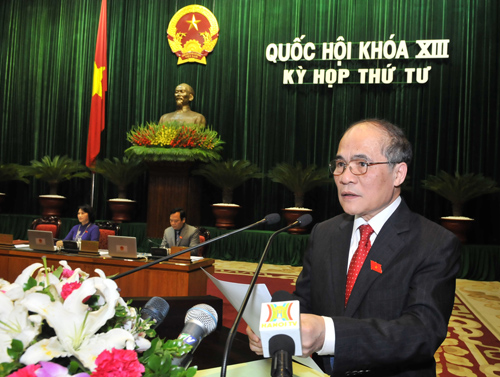 * Phát biểu khai mạc kỳ họp, Chủ tịch Quốc hội Nguyễn Sinh Hùng nhấn mạnh: Năm 2012, tiếp tục triển khai thực hiện Nghị quyết Đại hội đại biểu toàn quốc lần thứ XI của Đảng và các nghị quyết của Quốc hội; toàn Đảng, toàn quân, toàn dân, các ngành, các cấp và cộng đồng doanh nghiệp đã nỗ lực phấn đấu và đạt được một số kết quả đáng ghi nhận trong việc kiềm chế lạm phát, ổn định kinh tế vĩ mô, bảo đảm an sinh xã hội, duy trì tăng trưởng hợp lý gắn với đổi mới mô hình tăng trưởng và tái cơ cấu nền kinh tế.