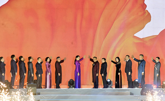 Các đồng chí lãnh đạo Trung ương và thành phố Hà Nội nhấn nút khai mạc Lễ hội
