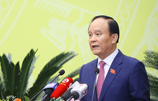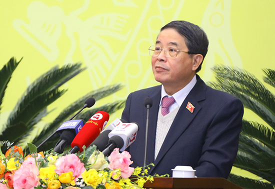 Bí thư Thành ủy Hà Nội Đinh Tiến Dũng phát biểu tại kỳ họp