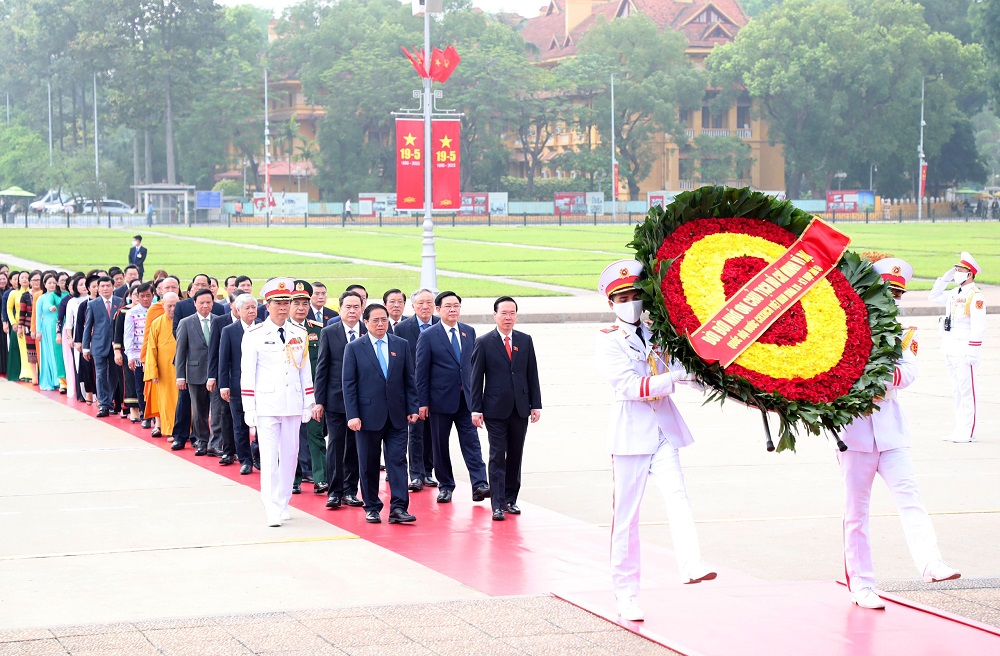 Các đồng chí lãnh đạo Đảng, Nhà nước và các vị đại biểu Quốc hội vào Lăng viếng Chủ tịch Hồ Chí Minh.