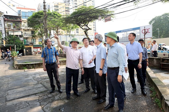 Bí thư Thành ủy và đoàn đã trực tiếp thị sát Nhà chung cư A, khu chung cư cũ Ngọc Khánh, phường Ngọc Khánh, quận Ba Đình. Đây là nhà chung cư thuộc diện nguy hiểm cấp độ D, hàng chục hộ thuộc đơn nguyên 1 đã được di dời tới nơi tạm cư để bảo đảm an toàn.