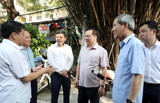 Bí thư Thành ủy Đinh Tiến Dũng thị sát nhà A, khu chung cũ Ngọc Khánh, quận Ba Đình.