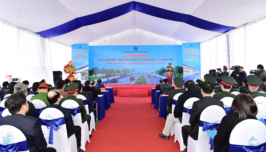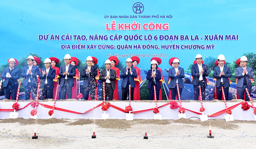 Sáng 3/12/2022, UBND thành phố Hà Nội đã tổ chức lễ khởi công dự án cải tạo, nâng cấp quốc lộ 6 đoạn Ba La - Xuân Mai. Ủy viên Bộ Chính trị, Bí thư Thành ủy, Trưởng đoàn đại biểu Quốc hội thành phố Hà Nội Đinh Tiến Dũng; Ủy viên Trung ương Đảng, Phó Bí thư Thường trực Thành ủy Hà Nội Nguyễn Thị Tuyến; Ủy viên Trung ương Đảng, Phó Bí thư Thành ủy, Chủ tịch UBND thành phố Hà Nội Trần Sỹ Thanh; Phó Bí thư Thành ủy, Chủ tịch HĐND thành phố Hà Nội Nguyễn Ngọc Tuấn; Trưởng ban Dân vận Thành ủy Hà Nội Đỗ Anh Tuấn tham dự.