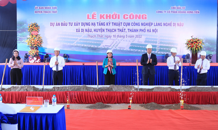 Sáng 16/5/2022, UBND huyện Thạch Thất tổ chức lễ khởi công xây dựng hạ tầng kỹ thuật cụm công nghiệp làng nghề Dị Nậu, huyện Thạch Thất. Tham dự buổi lễ có Ủy viên Trung ương Đảng, Phó Bí thư Thường trực Thành ủy Hà Nội Nguyễn Thị Tuyến; Phó Chủ tịch HĐND thành phố Phạm Quí Tiên; Phó Chủ tịch UBND thành phố Nguyễn Mạnh Quyền và lãnh đạo các sở, ngành, huyện Thạch Thất.