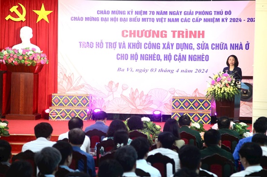 Phát biểu tại chương trình, Phó Chủ tịch UBND thành phố Vũ Thu Hà khẳng định: Chương trình trao hỗ trợ và khởi công xây dựng, sửa chữa nhà ở cho hộ nghèo, hộ cận nghèo được thực hiện tại 15 huyện, thị xã trên địa bàn thành phố ngày hôm nay là việc làm hết sức thiết thực, mang tính nhân văn sâu sắc, thể hiện truyền thống đoàn kết, chung tay vì người nghèo của cả hệ thống chính trị Thủ đô, tạo điều kiện cho các hộ gia đình có hoàn cảnh khó khăn trên địa bàn thành phố có cuộc sống ngày càng tốt hơn.