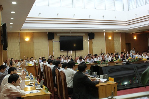 Các đại biểu HĐND TP biểu quyết tại Kỳ họp thứ 9 HĐND