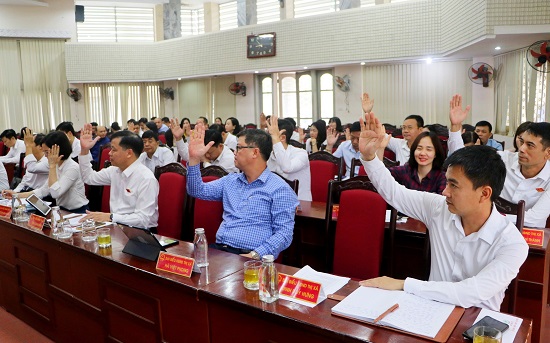 Đại biểu HĐND thị xã biểu quyết thông qua nghị quyết tại kỳ họp