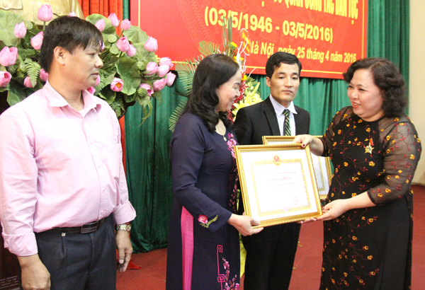 Đồng chí Nguyễn Thị Bích Ngọc trao bằng khen cho 3 tập thể