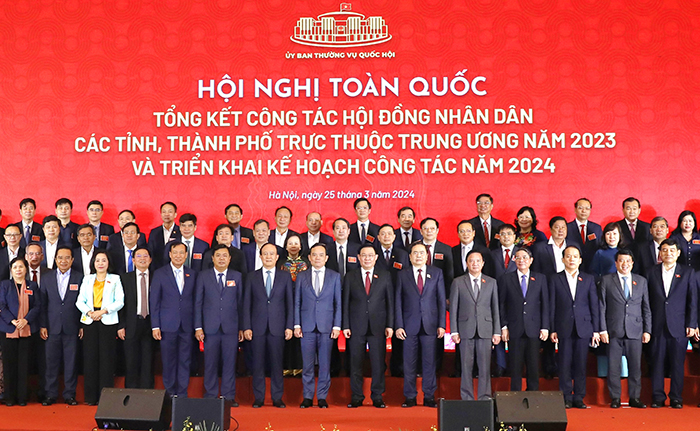 Chiều 25/3/2024, sau một ngày làm việc tích cực, trách nhiệm, khẩn trương, Hội nghị toàn quốc tổng kết công tác HĐND các tỉnh, thành phố trực thuộc Trung ương năm 2023 và triển khai kế hoạch công tác năm 2024 đã thành công tốt đẹp, hoàn thành toàn bộ nội dung chương trình đề ra.