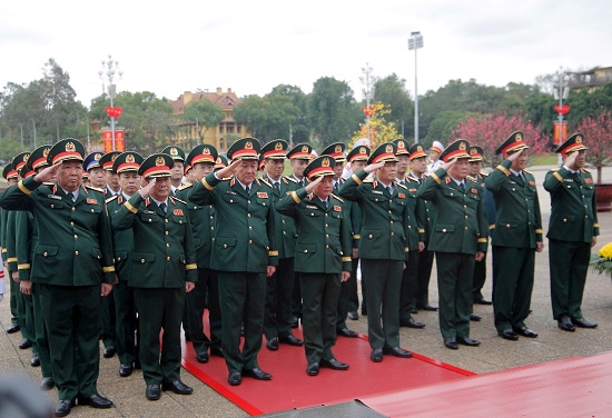 Đoàn đại biểu Quân ủy Trung ương, Bộ Quốc phòng vào Lăng viếng Chủ tịch Hồ Chí Minh. Ảnh: Viết Thành