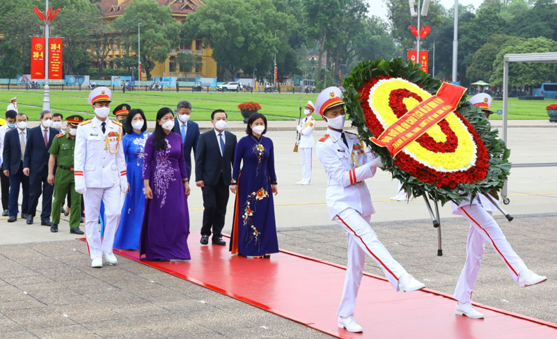 Sáng 27/4/2022, Đoàn đại biểu Ban Chấp hành Trung ương Đảng, Chủ tịch nước, Quốc hội, Chính phủ, Ủy ban Trung ương Mặt trận Tổ quốc Việt Nam cùng đại diện các bộ, ngành trung ương và thành phố Hà Nội đã đặt hoa, vào Lăng viếng Chủ tịch Hồ Chí Minh.